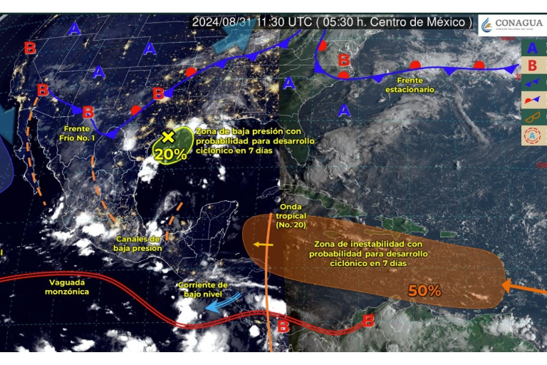 Este viernes, el SMN, etiquetó al primer frente frío de la temporada 2024-2025 el cual se aproxima a la parte de la frontera norte del País, mismo que reforzará las probabilidades de lluvias en dicha región.