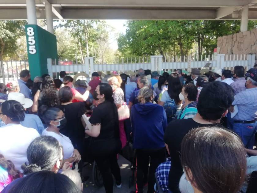 Personal de Protección Civil tuvo que dar apoyo para controlar el acceso y las filas, los gritos y reclamos por parte de los adultos mayores se mantuvieron y se acordonó parte del área de entrada.