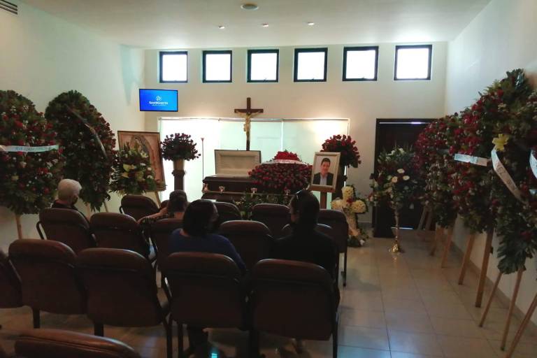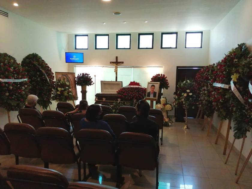 El cuerpo de Luis Enrique Ramírez es velado en la sala Aeternitas de la funeraria San Martín en la Colonia Montebello.