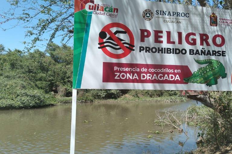Con la intención de evitar riesgos para las personas, el Gobierno de Culiacán instaló señalamientos advirtiendo de la presencia de cocodrilos en la zona dragada del río de Tepuchito en los que se prohíbe por tal motivo que ingresen a bañarse en estas aguas.