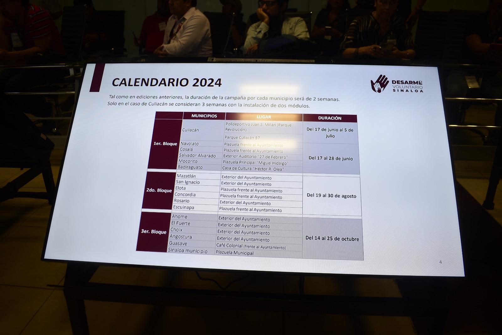 Cerrará en la zona norte entre el 14 y 25 de octubre. La recepción de armas será frente a los ayuntamientos de Ahome, El Fuerte, Choix y Angostura; en la plazuela municipal de Sinaloa de Leyva; así como en el Café Colonial frente al Ayuntamiento de Guasave.