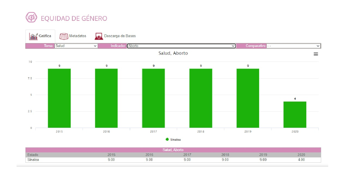 Por otro lado, las estadísticas del Gobierno de Sinaloa, en 2020 se presentaron cuatro abortos, siendo el año con menos casos, ya que desde el 2015 se registraban nueve.