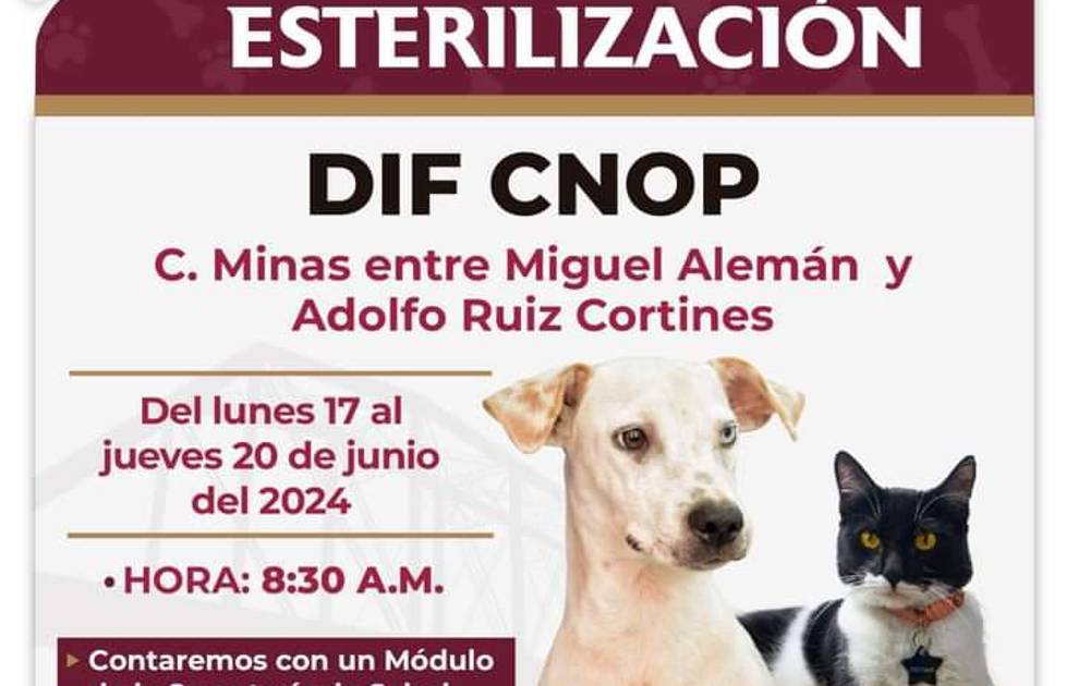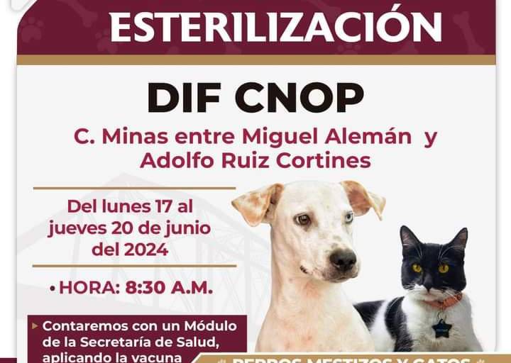 El servicio se ofrecerá del lunes 17 hasta el jueves 20 de junio, a partir de las 8:30 horas, entre las calles Miguel Alemán y Adolfo Ruiz Cortines, y se contará con un Módulo de la Secretaría de Salud aplicando la vacuna antirrábica.