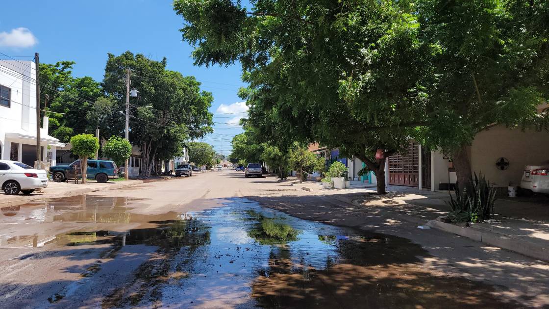 Desde hace cuatro días, agua potable brota por una fuga que corre por las calles de la colonia Agustina Ramírez, en Culiacán, pese a que en el municipio persiste la sequía.