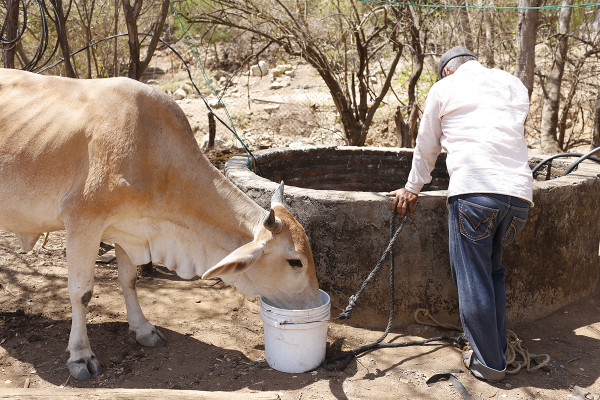 Como no hay agua para todo, los árboles frutales se están marchitando. La gente se baña con media cubeta y las vacas esperan por muchas horas sus tres cubetas que en lo individual necesitan para saciar su sed.