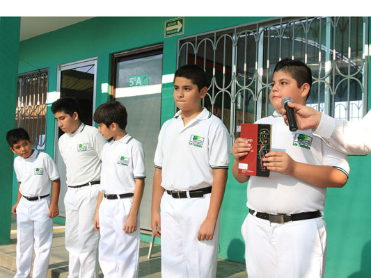 Durante el evento se llevaron a cabo los honores a la Bandera, y el alumno, Ángel Miguel Tirado Gutiérrez dijo el Juramento a la Enseña Patria.