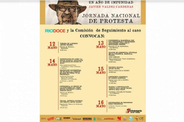 El programa, armado por la Comisión de Seguimiento al caso y el semanario Ríodoce, incluye presentaciones de libros, documentales, conferencias y capacitación para periodistas y activistas de derechos humanos en Mazatlán, Los Mochis y Culiacán desde hoy y hasta el próximo 16 de mayo.