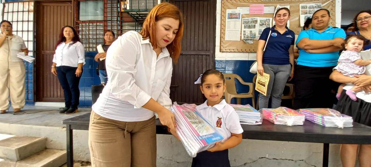 Por su parte la titular de Educación estatal, Gloria Himelda Félix Niebla, realizó una entrega simbólica de libros de texto a los estudiantes presentes.