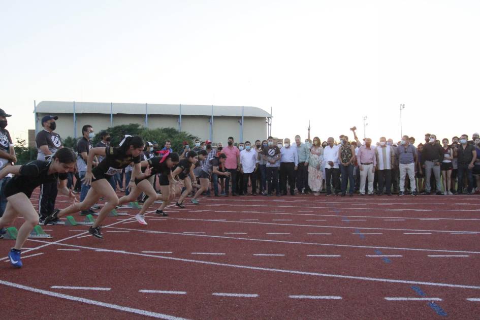 - Pista de atletismo de tartán, certificada internacionalmente por la IAAF