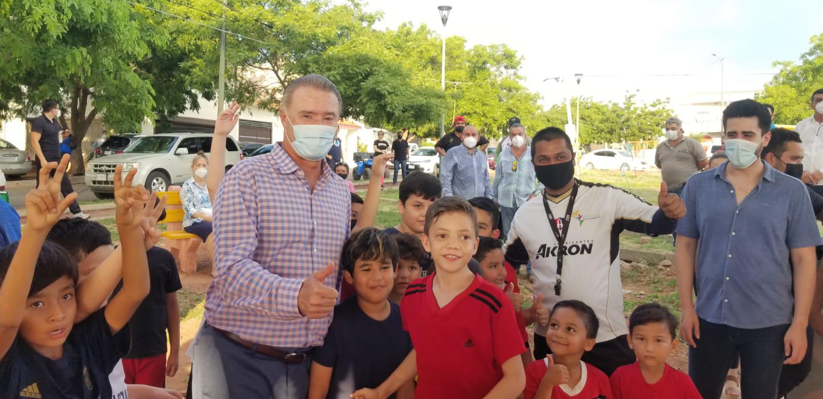 “En esta colonia vive mucha gente y no tenían techumbre, no tenían luz, no tenían la seguridad y ahora ya la tienen. Fue una inversión poco más de millón y medio de pesos pero que le da un virage total a que puedan estar practicando, haciendo ejercicio, conviviendo en la tarde, en la mañana, durante el día y antes no se podía por el sol”, expuso el Gobernador Quirino Ordaz Coppel durante su visita en la techumbre.