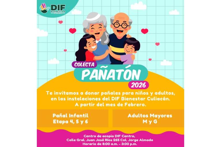Con el firme objetivo de tender una mano a los niños y adultos vulnerables de la capital sinaloense, el Sistema para el Desarrollo Integral de la Familia Bienestar Culiacán anunció este 16 de febrero el arranque oficial de la colecta “Pañatón 2026”.