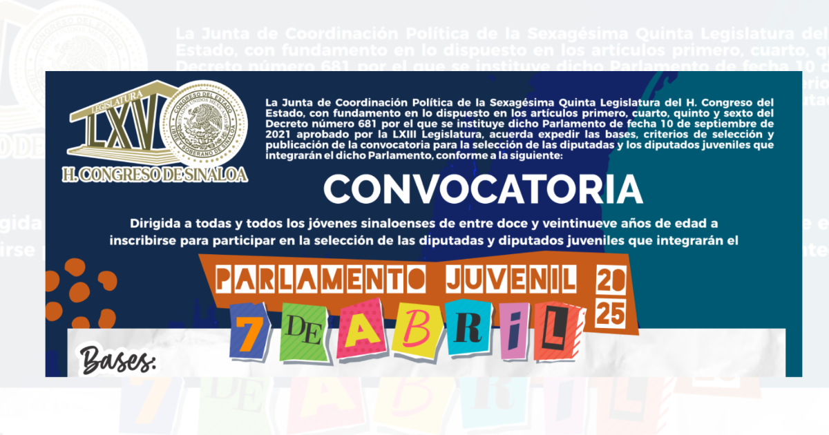 El Congreso del Estado de Sinaloa invitó a la juventud sinaloense a participar en el Parlamento Juvenil 2025, que supondrá la tercera edición de este encuentro.