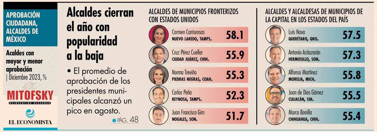 La casa encuestadora publicó los últimos resultados del ranking de los Alcaldes y Alcaldesas en 2023, con una aprobación promedio decadente de 48.8 por ciento.