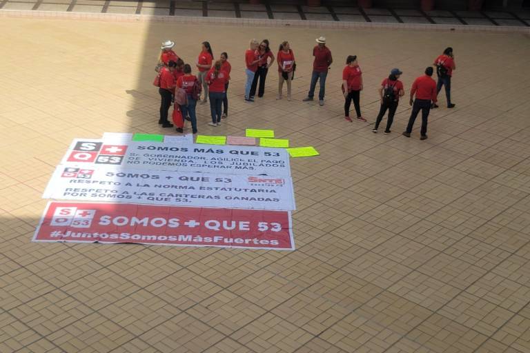 CULIACÁN._ Docentes jubiladas del colectivo “Somos Más Que 53” protestaron este lunes en el Palacio de Gobierno para denunciar la falta de pagos de interinatos cumplidos, los cuales aquejan en algunos casos desde noviembre de 2022.