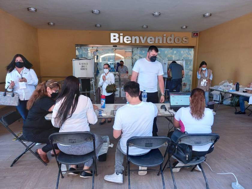 Las operaciones iniciaron a las 08:00 horas aproximadamente, y a las 10:30 horas continuaba el flujo constante de personas en la fila esperando su turno para pasar a las urnas.