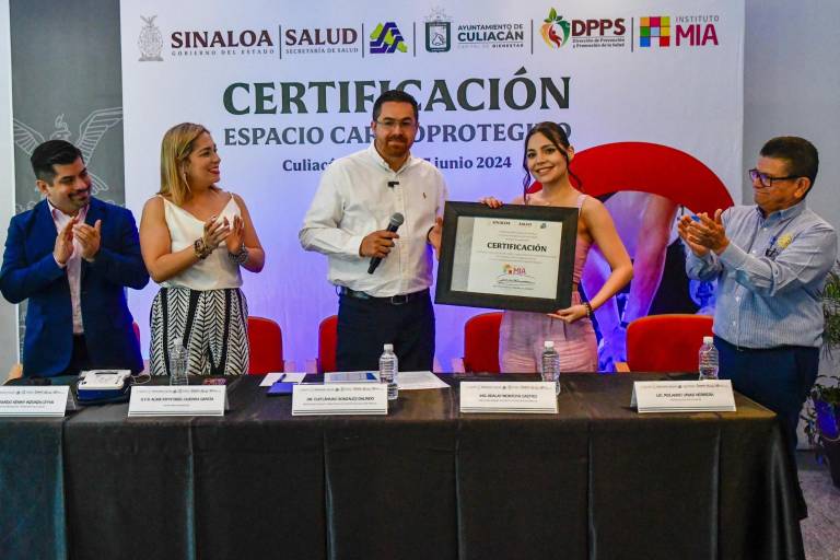 Además, se entregó una placa en el que certifica al auditorio como un espacio cardio protegido, cumpliendo con los requisitos de la Ley de Cardioprotección de Sinaloa.
