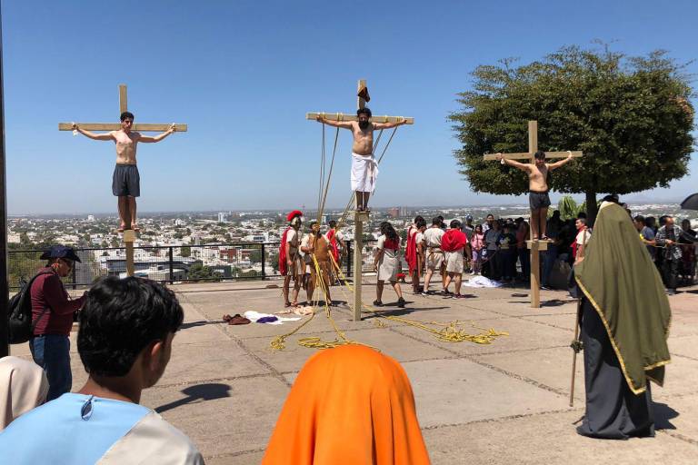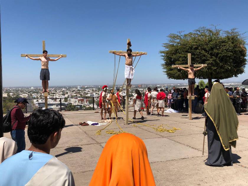 CULIACÁN._ Los fieles y creyentes de la iglesia católica presenciaron el Viacrucis en carne y hueso dando inicio al Triduo Pascual con la rememoración de la Pasión, Muerte y Resurrección de Jesucristo.