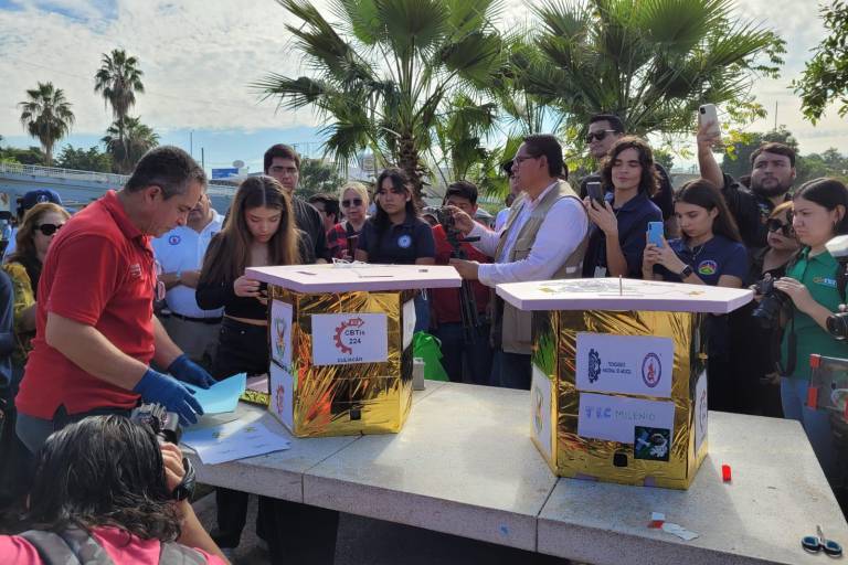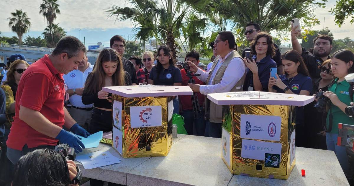 Estudiantes universitarios y de preparatorias, lanzaron 10 satélites Cubesat con mensajes de paz ante los hechos de violencia en Sinaloa.