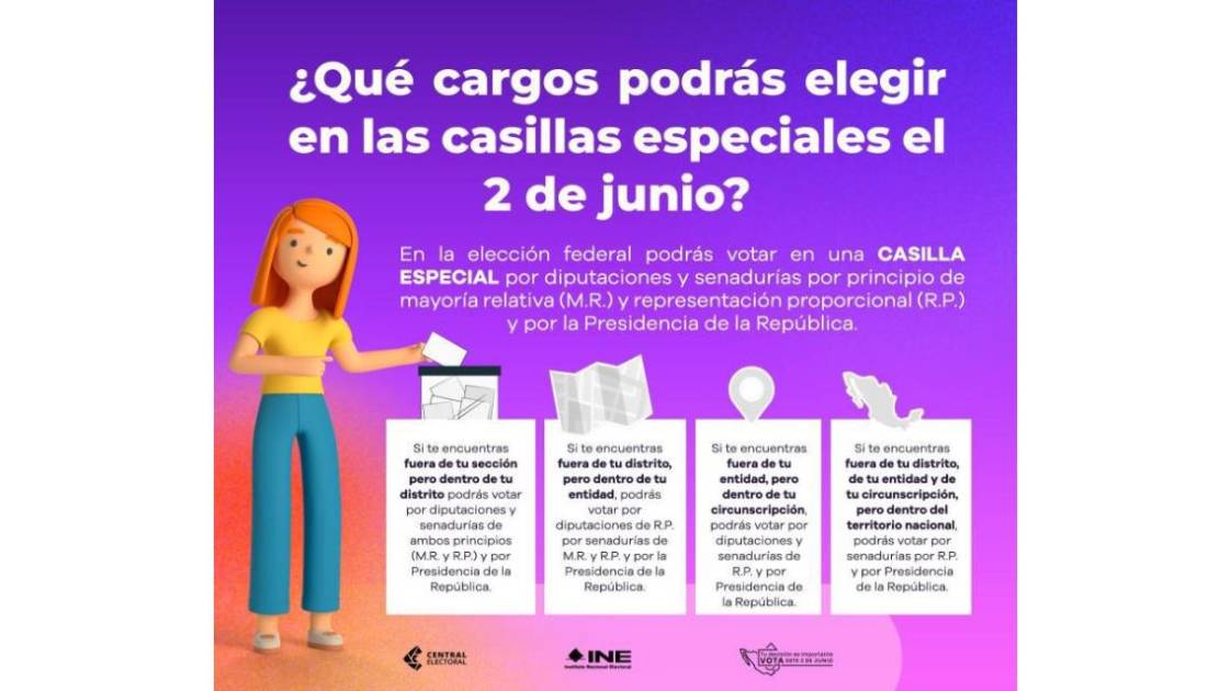 De acuerdo con el Instituto Nacional Electoral, el 2 de junio, que es el día de las elecciones, habrá casillas especiales para quienes estén lejos de su residencia puedan ejercer su derecho al voto.