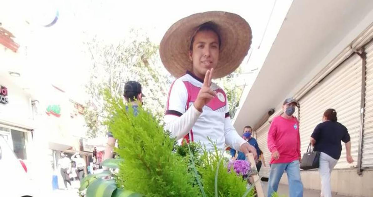 Leonel recorre las calles del Centro de Culiacán con una carretilla de madera repleta de macetas; los colores en diversos tonos de verde, blanco y uno que otro morado, llaman la atención de transeúntes desde lejos.