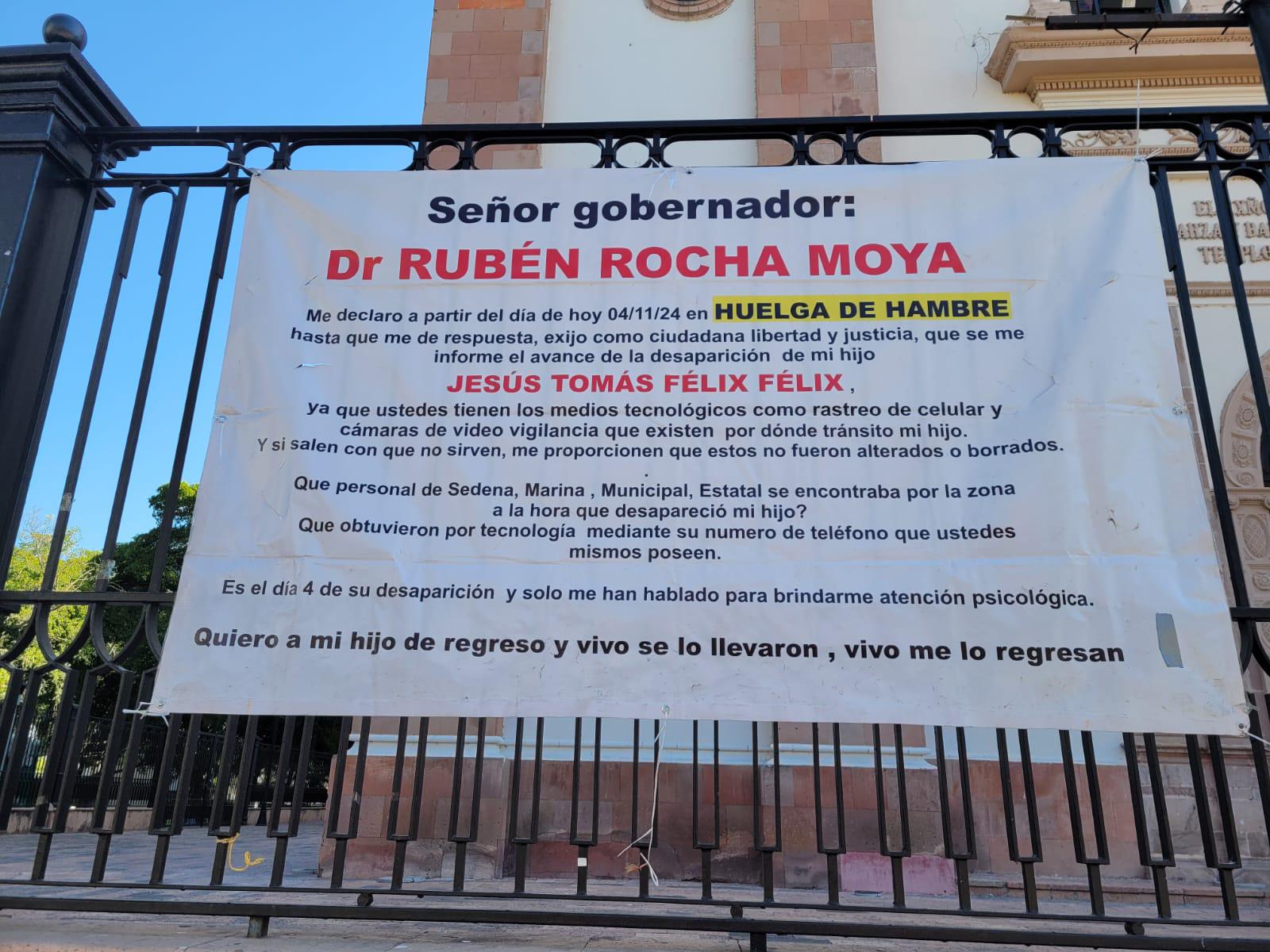 Han pasado 19 días desde que Rosa Lidia Félix Camacho perdió el apetito; desde el 1 de noviembre de 2024 que su hijo desapareció, no ha hecho otra cosa más que buscarlo y mantenerse en una huelga de hambre en la escalinata de la Catedral de Culiacán, para pedir su regreso a las autoridades.