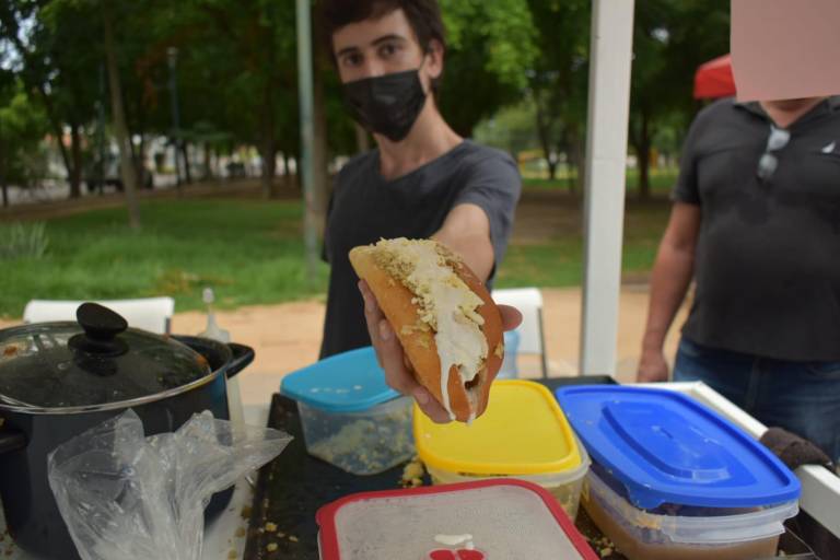 El primer día que se animó a poner su carreta, dijo se puso nervioso, ya que no sabía cuál iba a ser el recibimiento de la gente y su reacción ante este nuevo platillo.