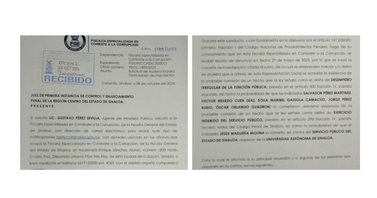Funcionarios de la Universidad Autónoma de Sinaloa tienen una nueva carpeta de investigación judicializada en su contra por presuntas compras irregulares, a costos millonarios y sin seguir los procedimientos de licitación.