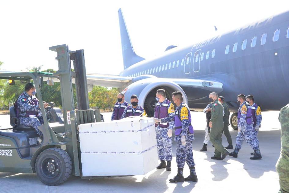 Las dosis se recibieron en el hangar de la Fuerza Aérea y estuvieron presentes además el representante del IMSS en Sinaloa Rafael López Ocaña, el Delegado de Programas Federales Jaime Montes Salas, el Secretario General de la Universidad Autónoma de Sinaloa Gerardo Alapizco Castro, el General de Brigada Maximiliano Cruz Ramos, General de Ala Fapadema Juan Osuna González.