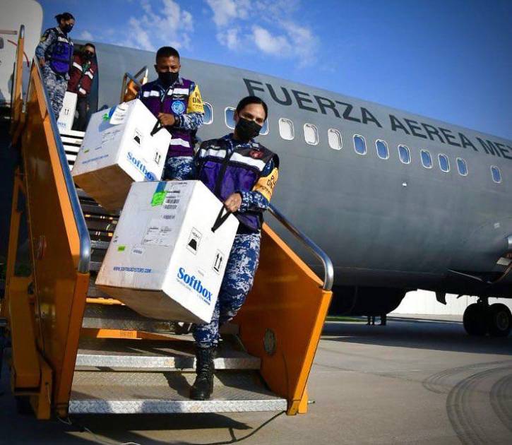 Las dosis llegaron en un avión de la Fuerza Aérea procedentes de la Ciudad de México, y fueron recibidas por autoridades sanitarias de la entidad.