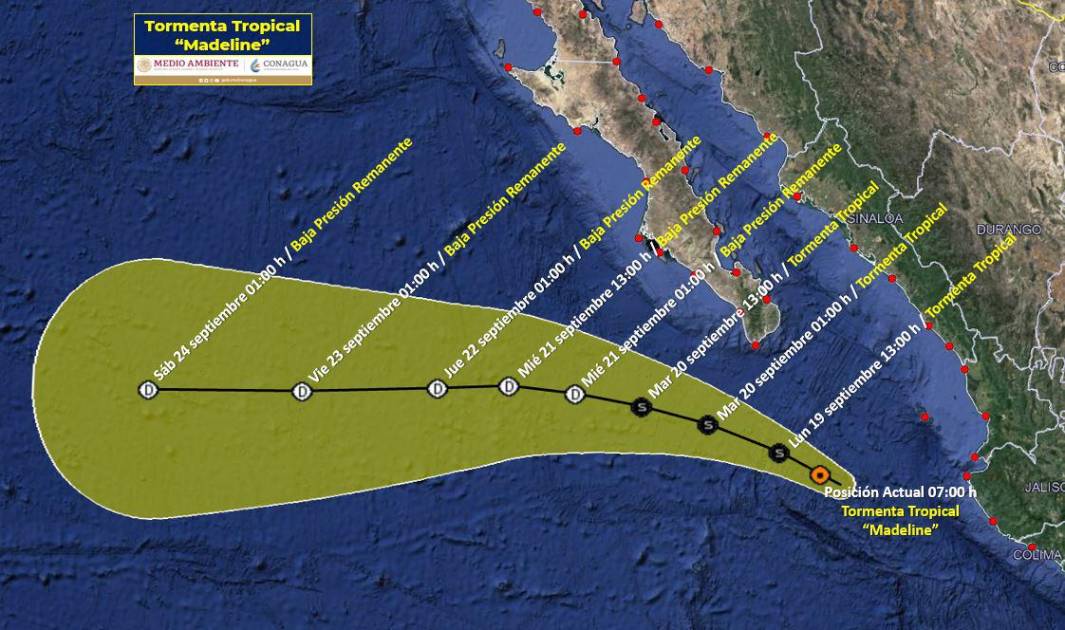 “Madeline se está adentrando al Pacífico mexicano, no ha representado desde su formación ni un peligro, ni amenaza para Sinaloa, pero sí, pronósticos para Sinaloa que todavía continúan”, indicó.