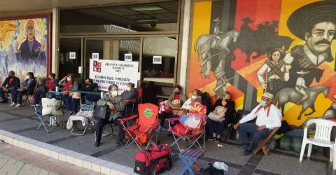 Docentes jubilados, sindicalizados en la Sección 53 del SNTE se mantienen en el Palacio de Gobierno exigiendo se les devuelvan los recursos del Fondo de Vivienda que cada uno aportó durante sus años laborales, y de los cuales no hicieron uso.