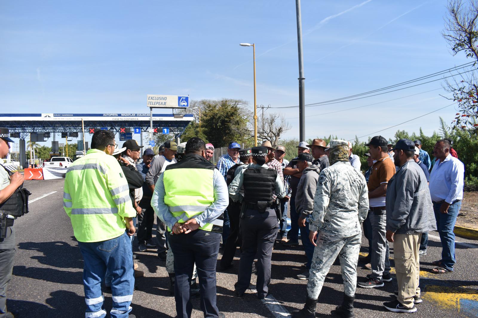 Agricultores de Navolato y Culiacán, principalmente, arribaron desde la tarde del lunes a la caseta, y mantienen su plantón en busca de ser atendidos por autoridades estatales.
