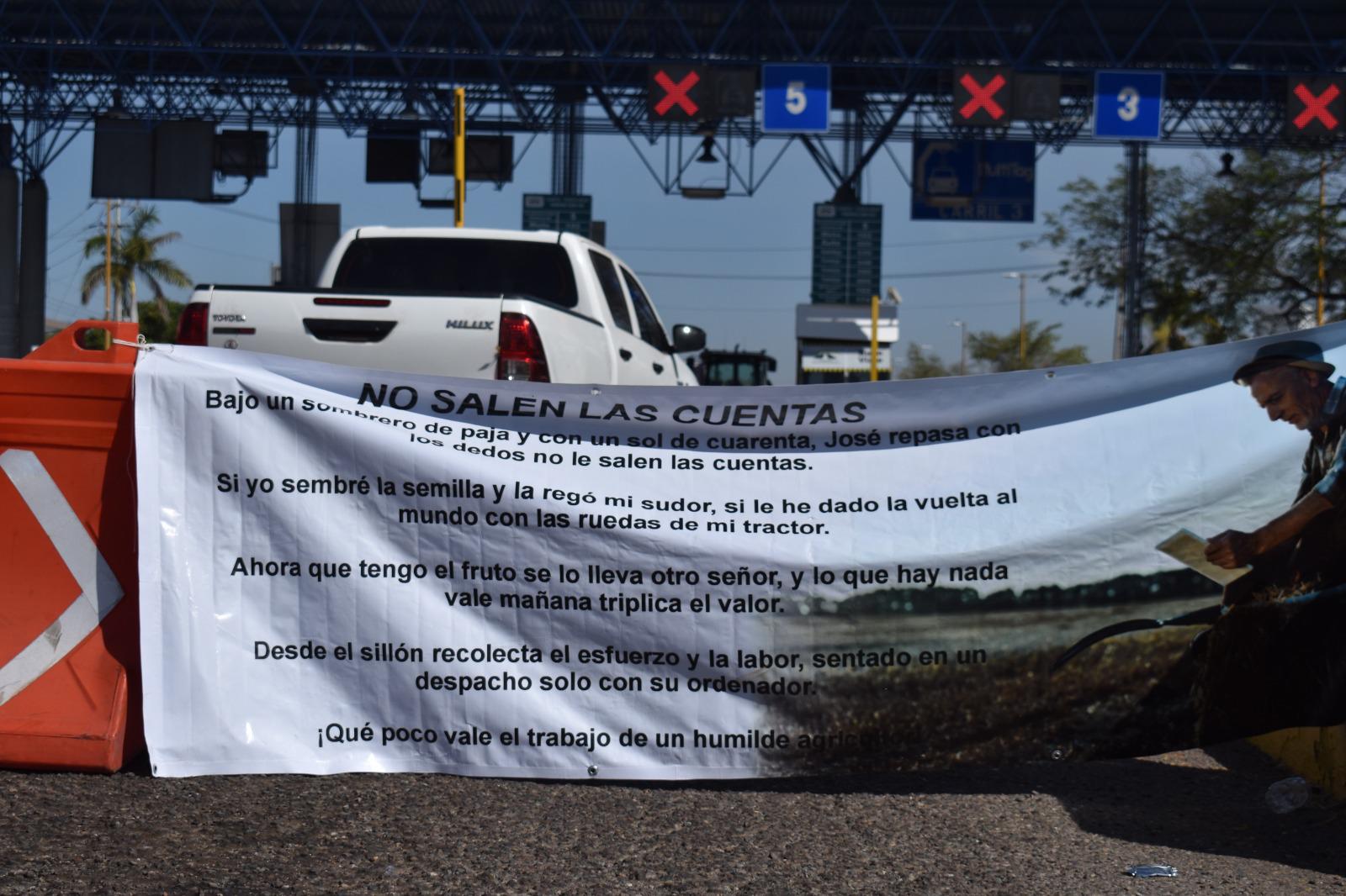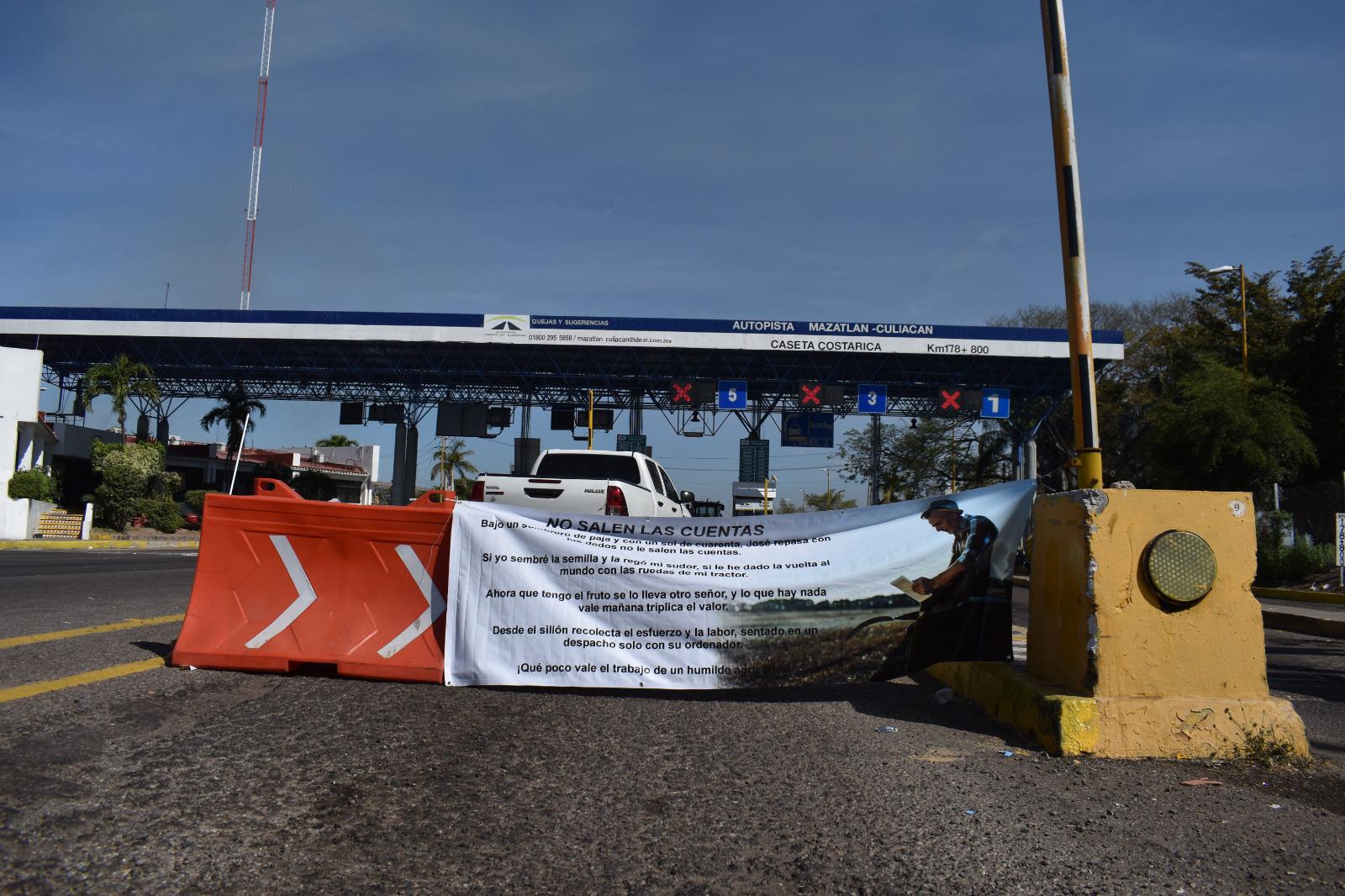 Productores de maíz de la zona centro de Sinaloa restringieron el paso vehicular por la caseta de cobro en Costa Rica, al sur de Culiacán, a manera de protesta contra el precio de comercialización del grano establecido para este año.