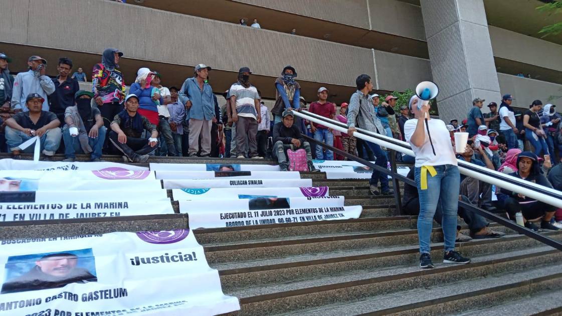 Enojados por el asesinato de Jesús Antonio Castro Gastélum, presuntamente por parte de elementos de la Marina en Villa Juárez, Navolato, la multitud empezó a golpear la puerta de cristal exigiendo el acceso al edificio.
