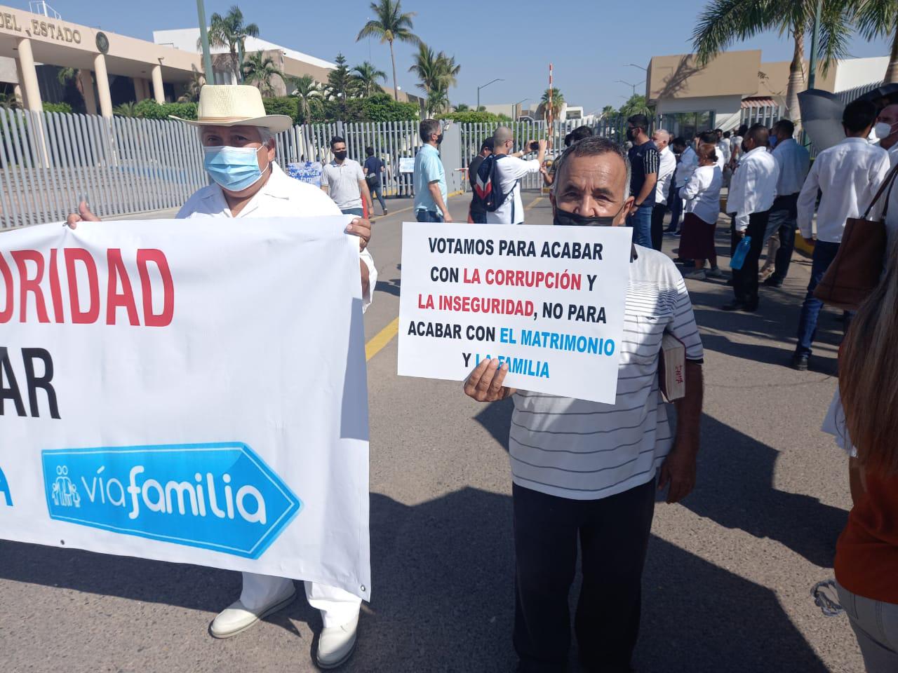 Grupos que se autodenominan pro familia han arribado al Congreso de Sinaloa para manifestarse en contra del matrimonio igualitario, tema que este martes estará en el Pleno para su discusión y votación.