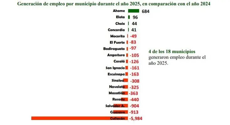 Más de la mitad de los municipios de Sinaloa perdieron empleos formales en 2025