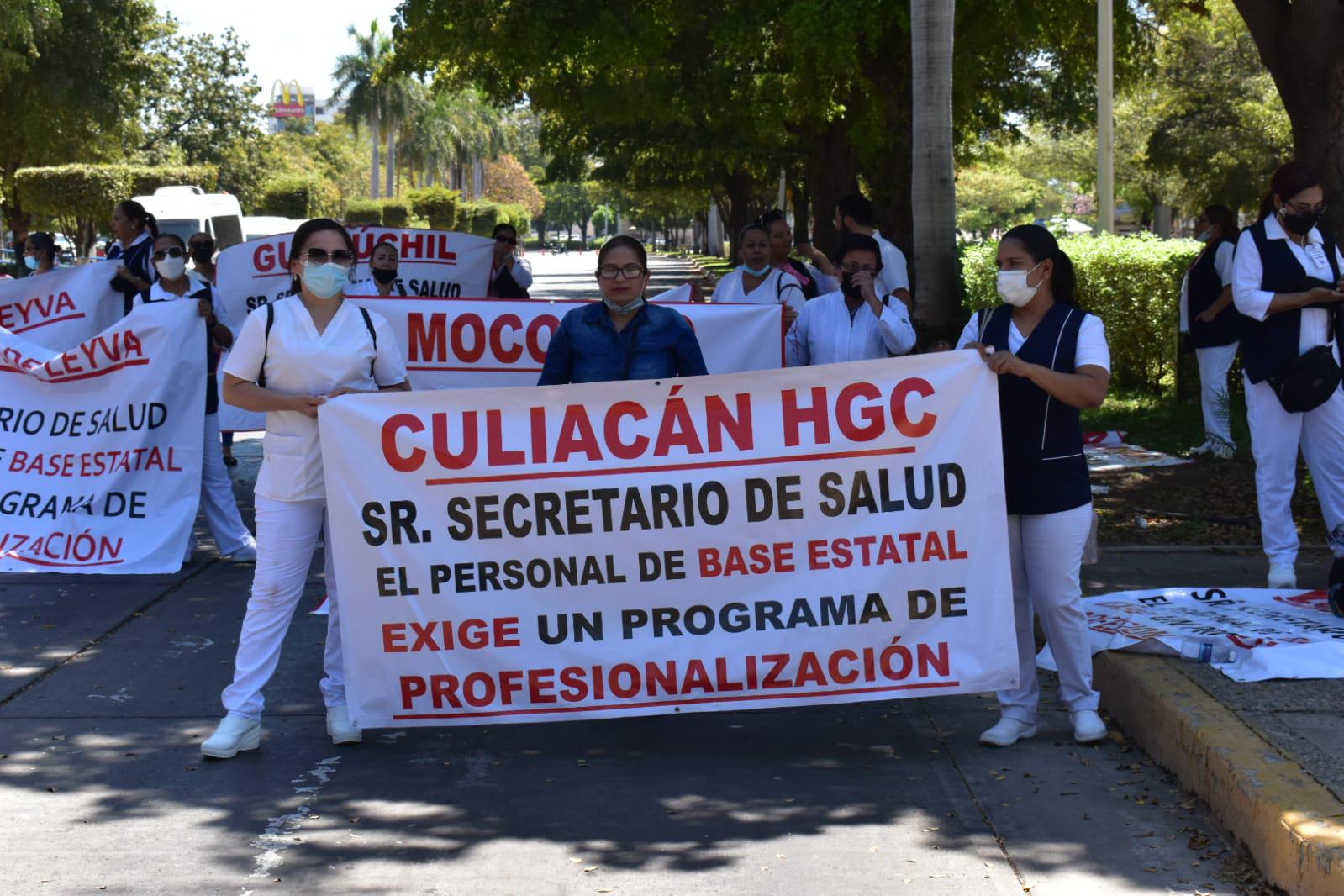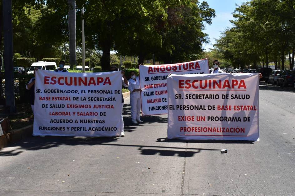 Durante esta semana en Culiacán hubo una manifestación de aproximadamente 60 trabajadores de diversos municipios exigiendo recategorización ya que sus contratos permanecen igual desde el 2008. Una de las manifestantes explicó que son personal de base desde el año ya mencionado, sin embargo, tienen código de enfermeras auxiliares aunque tengan licenciatura, por ejemplo.