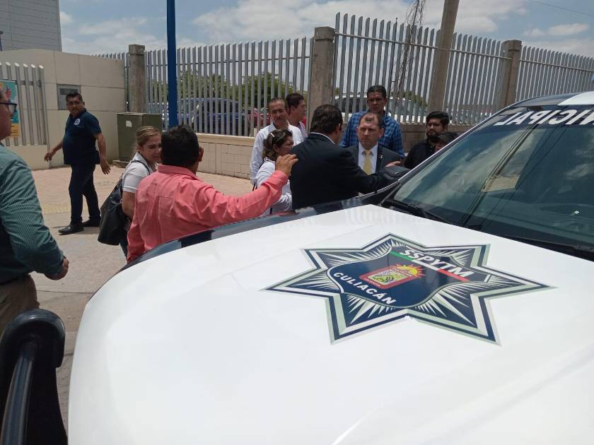 Aún corriendo el informe de labores, el representante legal de la UAS, Robespierre Lizárraga Otero, salió al lugar de las agresiones para hablar con policías, quienes le dieron un informe.