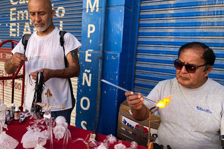 Los hermanos Miguel Ángel y Sergio son artesanos del cristal soplado, crean distintas figuras decorativas con vidrios artísticos.