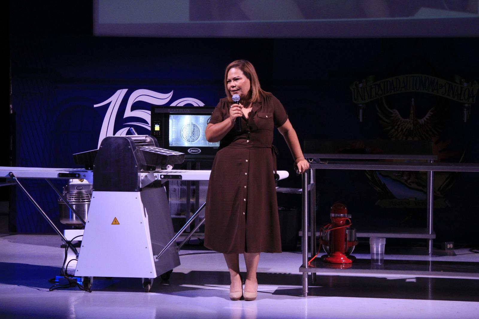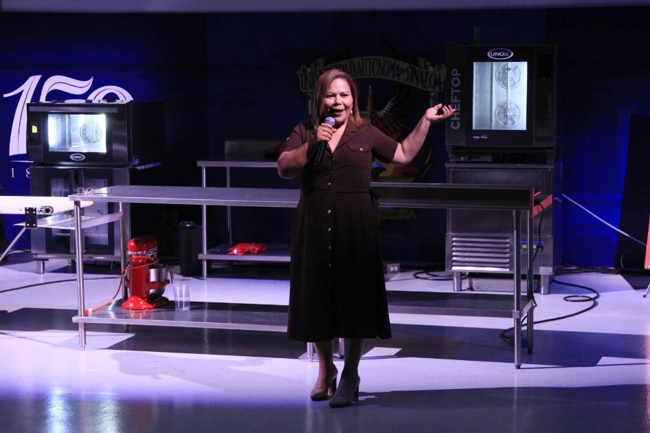 En la conferencia “Cómo inicié mi negocio”, conquistó a los estudiantes de la Facultad de Gastronomía de la Universidad Autónoma de Sinaloa con su enérgica historia de la empresa que inició como un ingreso extra y saltó a la fama nacional.