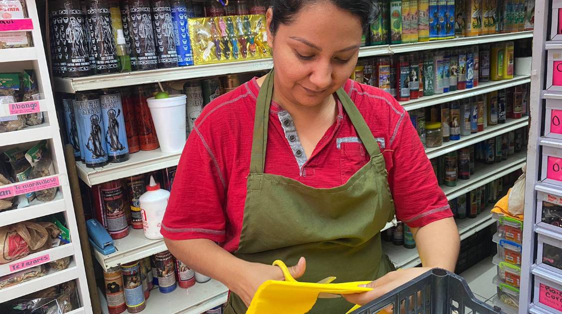El negocio familiar luce múltiples estatuas de San Judas Tadeo, así como veladoras con la imagen del Santo de las Causas Perdidas que yacen en los estantes.