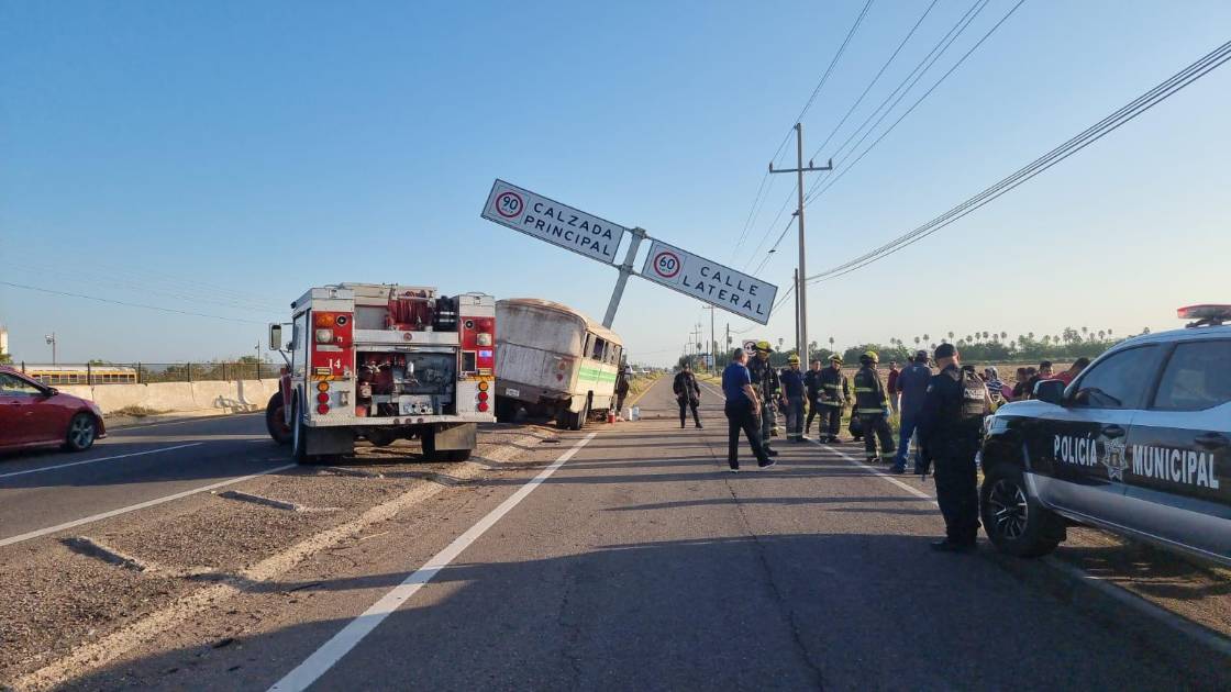 Este jueves un camión que transportaba jornaleros se estrelló contra un poste frente a la Escuela de Agronomía de la Universidad Autónoma de Sinaloa. La unidad trasladaba 14 personas, entre ellas dos menores de edad uno de 12 años y el otro de 15.