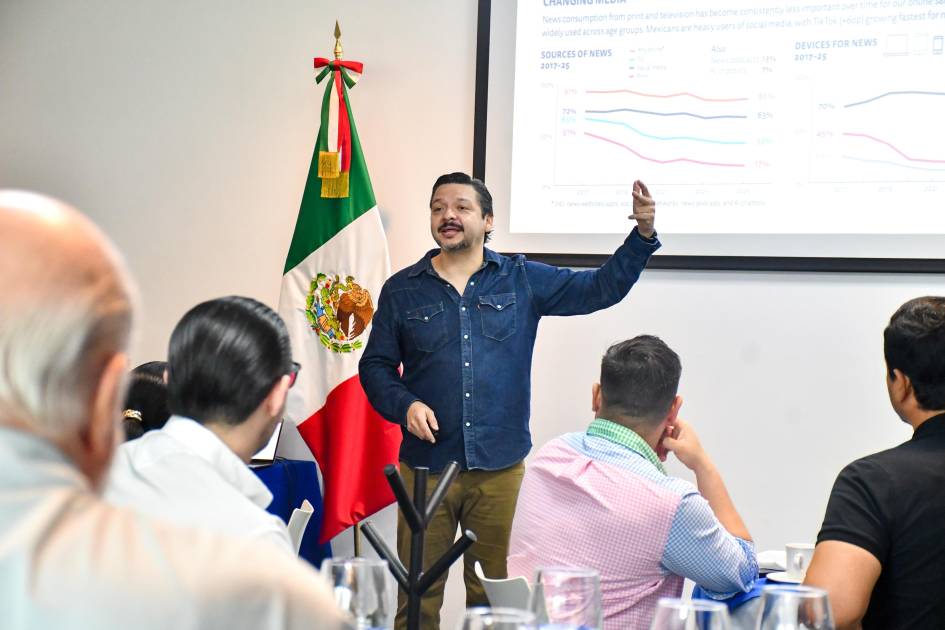 Ante egresados del Instituto Tecnológico y de Estudios Superiores de Monterrey campus Culiacán, resaltó que en los últimos años la prensa se ha enfrentado a un entorno en el que la sociedad consume menos contenidos periodísticos, lo que se suma a una corriente en el que predomina el lenguaje audiovisual.