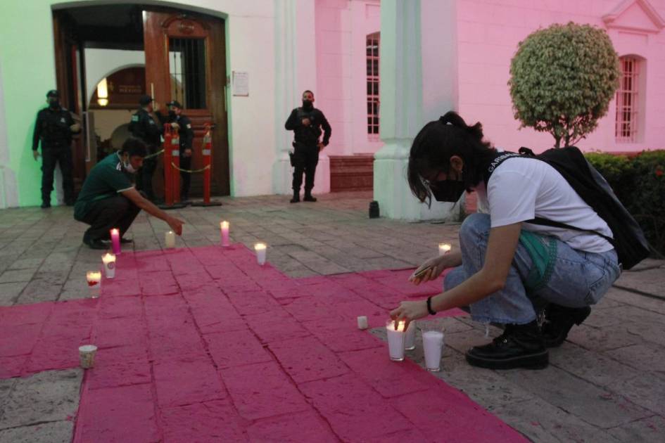 Con una cruz rosa rodeada de velas se realizó una vigilia para todas aquellas mujeres que han perdido la vida por la violencia que se vive en Culiacán.