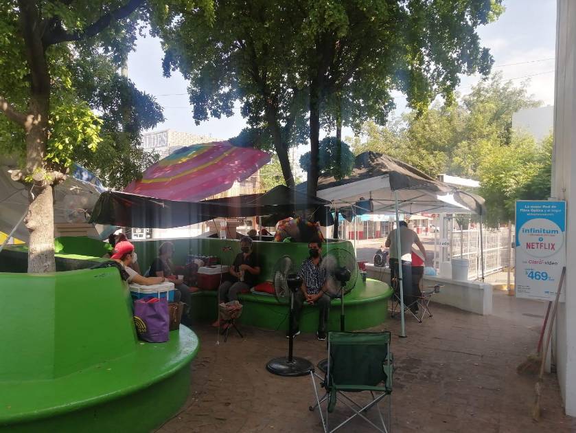 Los familiares de pacientes instalaron un pequeño campamento a las afueras del hospital, en el cual tienen algunas hieleras con bebidas y comida; tienen tendidos donde por las noches intentan descansar un poco.