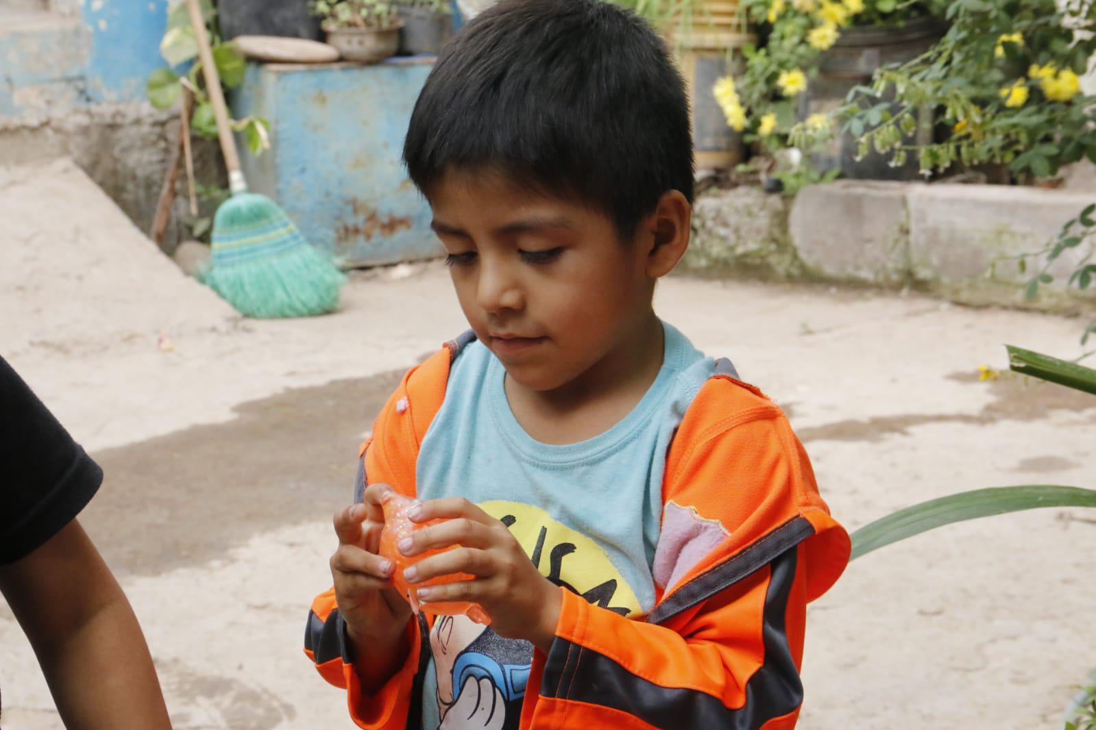 CULIACÁN._ Pedro es callado, apenas tiene 5 años y luce muy reservado, prefiere mantenerse cabizbajo mientras juega con su slime color naranja que combina con su chamarra.