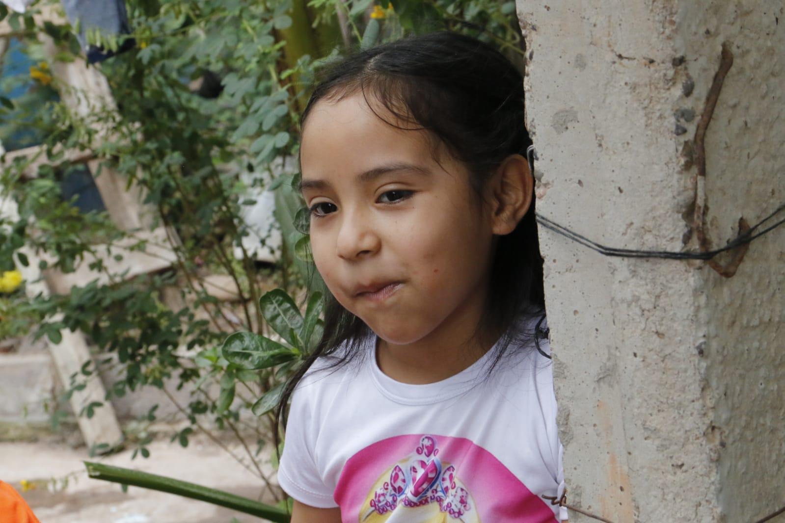 Su hermanita Evelin, de 6 años, muestra mayor apertura para hablar y dirigirse a los Reyes Magos para pedirles un obsequio el próximo 6 de enero. Sus gustos pueden deducirse desde su vestimenta, pues en su blusita figura el rostro de una muñeca a la que admira.