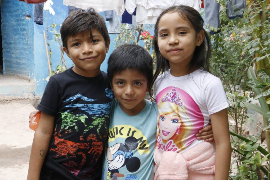 Pedro y Evelin comparten dulces como hermanitos; ambos juegan con su primo Leonel