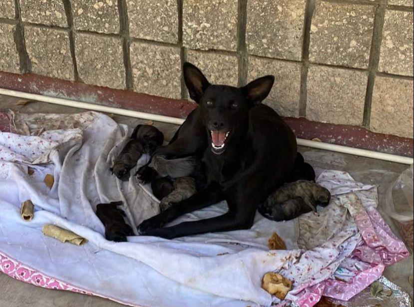 En redes sociales se ha difundido la imagen de “Negra”, una perrita callejera que tuvo a sus crías dentro de las instalaciones de la Universidad Autónoma de Occidente, unidad académica Guamúchil.