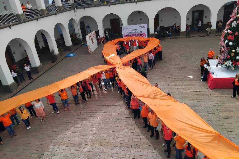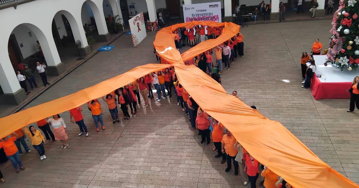 “El día de hoy, quienes trabajamos en la administración pública municipal reiteramos nuestro compromiso para que cada día estemos realizando acciones y en su momento poder fin a la violencia que existe contra las mujeres, las adolescentes y las niñas. El mensaje que se pretende llevar con esta formación de este lazo color naranja es ese compromiso que tenemos todas las personas que somos servidores, servidoras públicas”, apuntó.